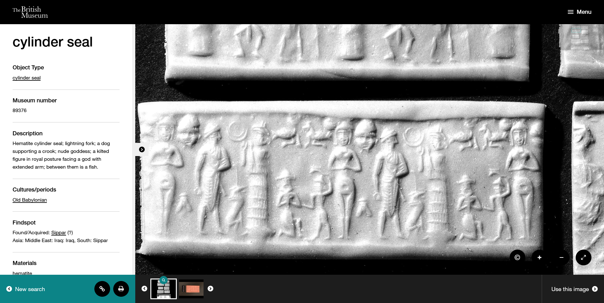 The original British Museum web posting of Old Babylonian Cylinder Seal #89327- subset of British Museum composite BM# 89376 (bottom panel of Figure E above) – can be accessed at this link, or can be viewed by clicking on this image.33