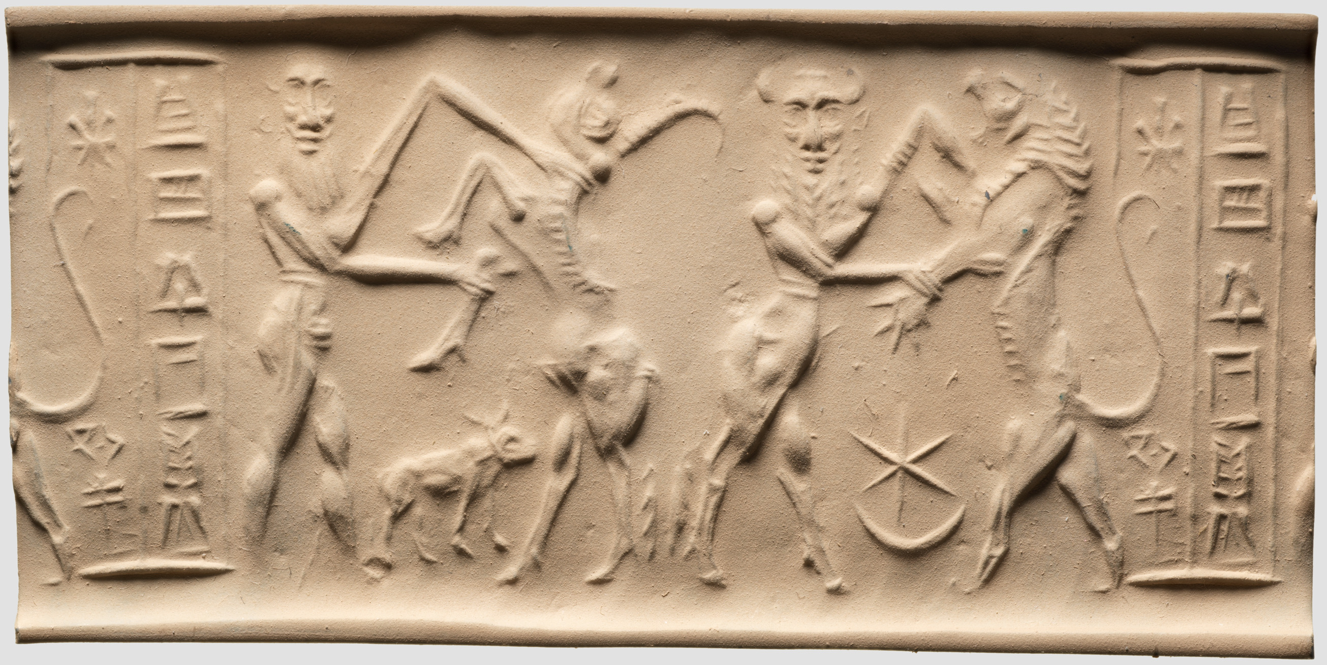 BCE Akkadian period (top). The British Museum, Old Bablyonian period, 1900 – 1600 BCE, Cylinder seal #89327 (bottom).Moreover, why was the initiate of the Magician’s mysteries unfailingly brought before the Gods to learn the secret of the star and crescent — a symbol that endures across 3,700 years of mystical tradition, from ancient Uruk (ca. 3800 BCE), through the Akkadian age (ca. 2350 BCE), and on into the Roman-era kingdom of Commagene (ca. 100 BCE)? See the scrolling video linked in the text above, along with the accompanying images. I include here cylinder seals from The Metropolitan Museum (Met) and the British Museum to demonstrate that the ancient corpus of Sumerian, Old Babylonian, and Akkadian eschatological art originally and consistently portrayed the entity within the crescent not as the sun, nor as the winged disk, but as a star.